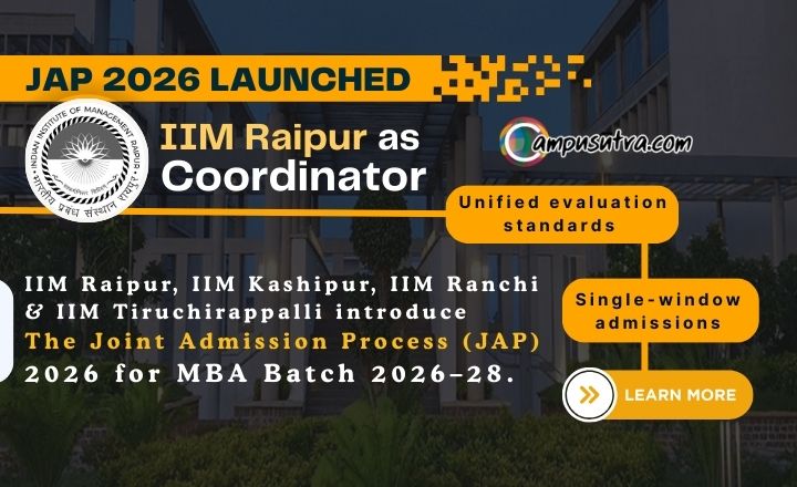 JAP 2026: The Indian Institutes of Management (IIMs) at IIM Raipur, IIM Kashipur, IIM Ranchi and IIM Tiruchirappalli have announced a Joint Admission Process (JAP) for MBA admissions for the batch 2026 2028.