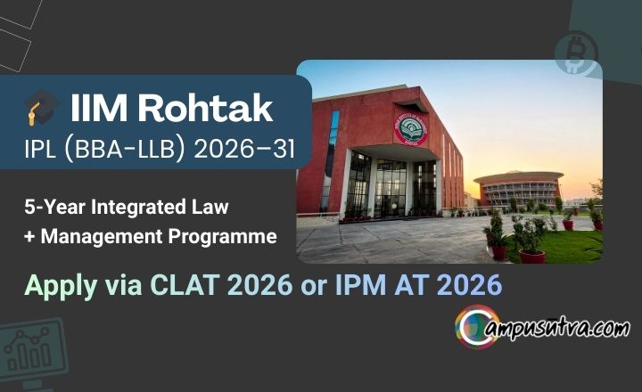 IPL 2026 : The Integrated Programme in Law (IPL) at IIM Rohtak (Indian Institutes of Management Rohtak) is a prestigious five-year interdisciplinary program that combines Business Management with Legal Education, leading to a BBA-LLB degree. Applications for the 2026–31 batch are currently open. BBA LLB Admission 2026 open now, candidates can apply online.