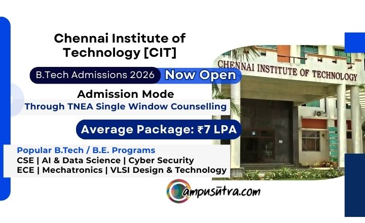 B Tech Admission 2026: Th Admissions 2026 for the B.E./B.Tech programs at Chennai Institute of Technology (CIT) for the upcoming academic year are primarily conducted through the Tamil Nadu Engineering Admissions (TNEA) single-window counseling process.