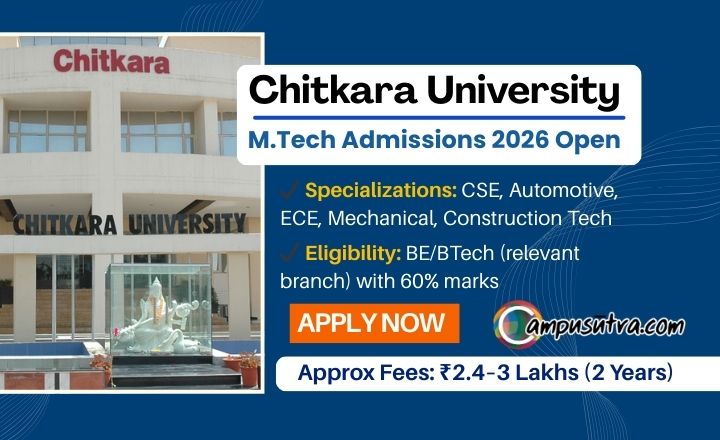 | Entrance Exam | Valid GATE score is preferred. Candidates without GATE may need to appear for the Chitkara University Entrance Test. |