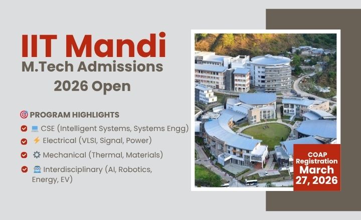 IIT Mandi M Tech Admission 2026: The Indian Institute of Technology Mandi (IIT Mandi) opened its M Tech application 2026 portal for the Batch 2026 -27. Candidates can apply Online.