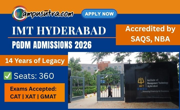 IMT Hyderabad Admission 2026: IMT Hyderabad (Institute of Management Technology, Hyderabad) open admissions for its 2-year full-time residential PGDM programme for the batch 2026 -28. Candidates can apply Online.
