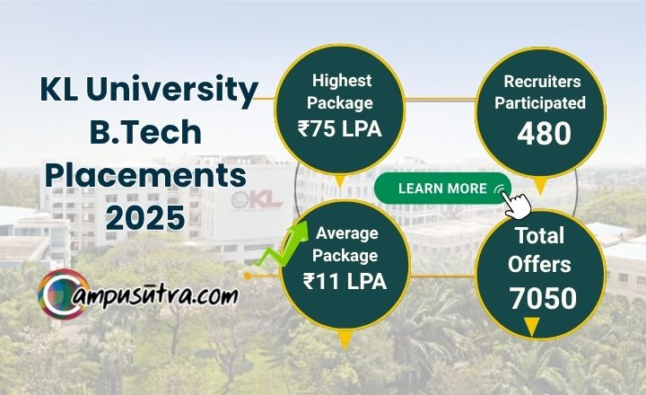 KL University B Tech Placements 2025: The KLEFT Deemed to be University or KL University, Guntur, Andhra Pradesh released the final placements for the B Tech Batch 2025 . The highest salary offered is Rs. 75 Lakh per annum (LPA); the average salary offered is Rs. 11 Lakh per annum and the Median salary offered is Rs. 7.6 Lakh per annum. As per the report, a total 4806 offers were made.