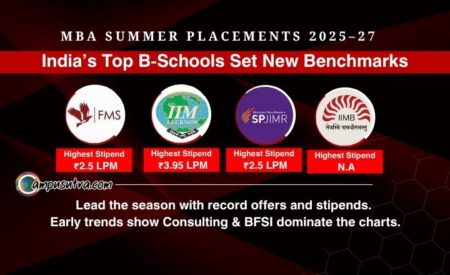 Views 574 India’s top business schools have begun releasing their Summer Internship Placement (SIP) reports for the MBA/PGDM Class of 2025–27, marking the start of placement season insights. Apply to any top 250 B Schools from one window. Shortlist, save. CLICK SPJIMR Mumbai, IIM Lucknow, FMS Delhi, and IIM Bangalore are among the early institutions to … Continue reading MBA Summer Placements 2025–27: Leading B-Schools Release SIP Reports