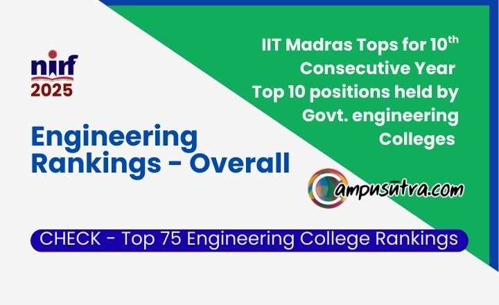 The NIRF 2025 Engineering Rankings were officially released by the Ministry of Education on September 4 in New Delhi, spotlighting India’s top engineering institutions. For the 10th consecutive year, IIT Madras being at top position, reaffirming its dominance in technical education, followed by IIT Delhi at 2nd and IIT Bombay at 3rd.