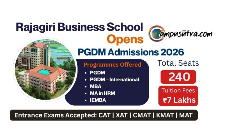 Rajagiri Business School PGDM Admission 2026: Rajagiri Business School (RBS) Kochi, opens applications for its 2 year full-time Post Graduate Diploma in Management (PGDM) and PGDM international for the batch of 2026 -28. Candidates can apply Online before 15 April 2026 (tentative). Rajagiri Business School Offers full time Programme in PGDM, MA in HRM, MBA, PGDM–International, and IEMBA programs.