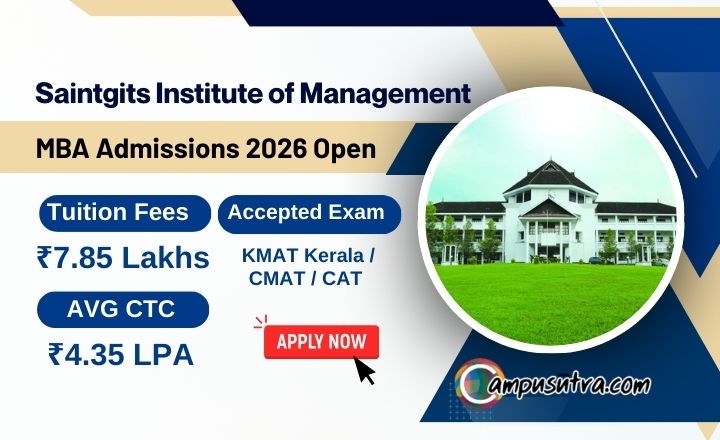 Saintgits Institute of Management Admission 2026: The Saintgits Institute of Management (SIM), Kottayam opened application for its MBA Admission for the batch 2026 – 28. Saintgits is a research-focused business school affiliated with APJ Abdul Kalam Technological University (KTU) and is known for its strong industry ties and autonomous curriculum structure. Candidates can apply online.