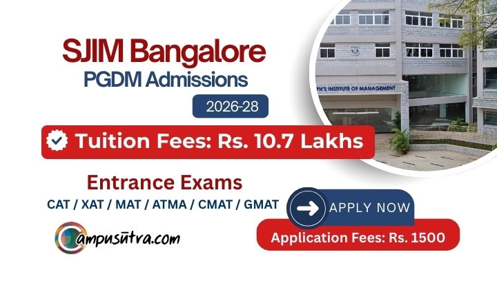 SJIM Bangalore Admission 2026: St. Joseph’s Institute of Management (SJIM) Bangalore has invited Applications for its Admission into its 2 year full time Post Graduate Diploma in Management (PGDM) Programme for the batch 2026 -28. (PGDM equivalent to MBA by AICTE).