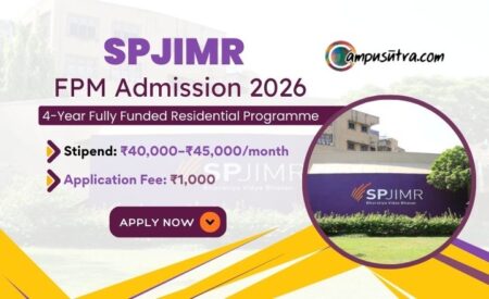 Views 38 SPJIMR FPM Admission 2026 : The S. P. Jain Institute of Management and Research Mumbai (SPJIMR Mumbai) opened applications for its FPM Programme for admission into 2026 batch, FPM programme is approved by AICTE Fellow Programme in Management (FPM) is a doctoral-level programme (PhD Programme) is a 4 year residential Programme. PhD Admission … Continue reading SPJIMR Opens Application for FPM Admission 2026