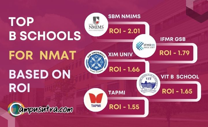 VIT Business School, SBM NMIMS and IFMR GSB, Krea University, are top 3 B Schools based on ROI for the NMAT.