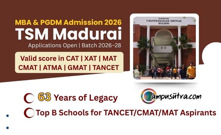 TSM Madurai Admission 2026: The Thiagarajar School of Management (TSM), Madurai, offers two main postgraduate management programs: the MBA (Master of Business Administration) and the PGDM (Post Graduate Diploma in Management). TSM Madurai opens application for PGDM/ MBA Admission for the batch 2026 -28. Candidates can apply Online.