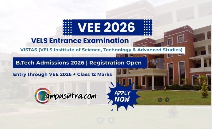 VEE 2026 Exam: The B Tech admission 2026 process at VELS Institute of Science, Technology and Advanced Studies (VISTAS) is primarily based on their entrance exam, known as the VELS Entrance Examination (VEE), along with a focus on your qualifying examination marks. VEE 2026 Registration Open now.